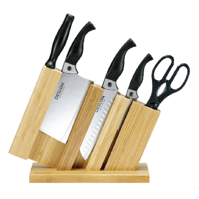 砍骨刀、三德刀、水果刀、厨房剪、磨刀棒、开槽帆船碳化竹抑菌刀座